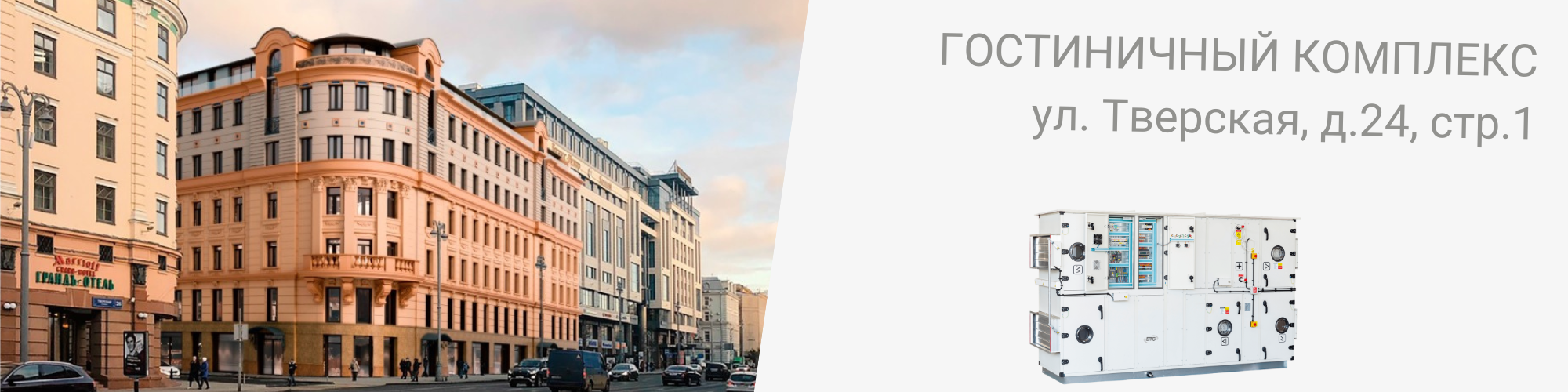 Историческое здание по адресу: ул. Тверская, д. 24, стр.1 перестроено под гостиничый комплекс с апартаментами, номерами, торговыми помещениями и подземным паркингом.