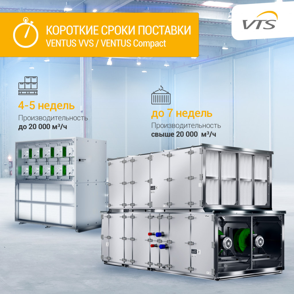 VTS Group предлагает короткие сроки поставки вентиляционных агрегатов VENTUS VVS и VENTUS Compact.