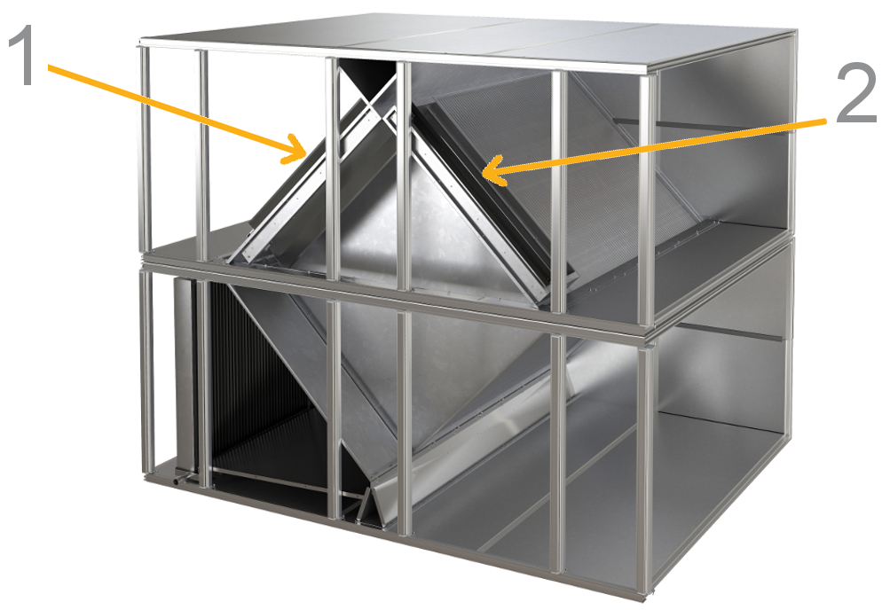 Кроме внедрения систем PREMIUM для рекуператоров воздуха, VTS предлагает интегрирование камеры смешивания в неиспользованное пространство байпасса: