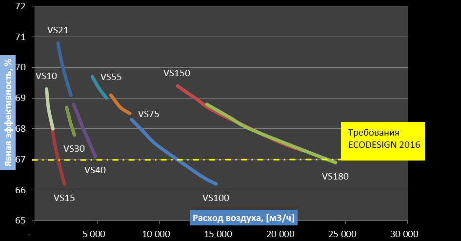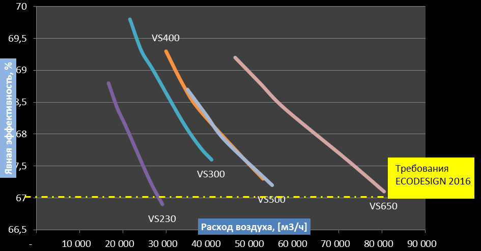 Показатели эффективности сухой рекуперации для агрегатов VENTUS VS 230 – VS 650 рассчитанные в соответствии с РАСПОРЯЖЕНИЕМ КОМИССИИ (ЕС) № 1253/2014