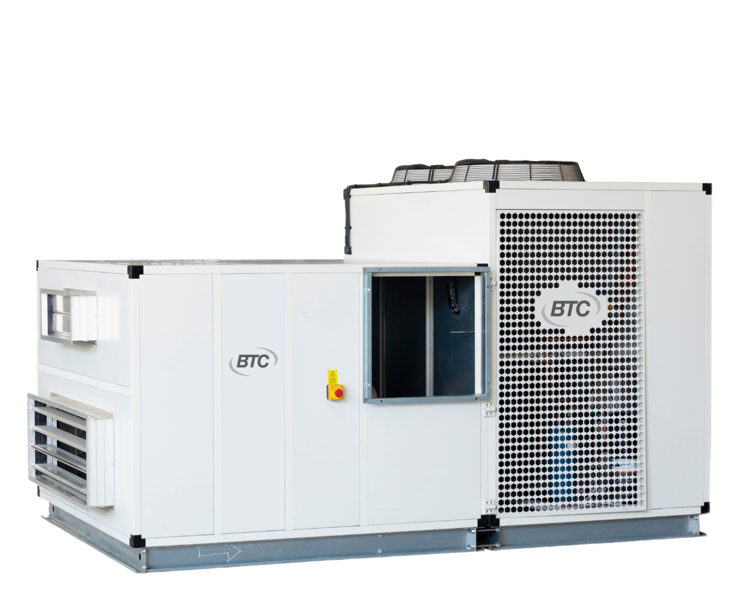 Агрегаты состоят из сэндвич-панелей из оцинкованной стали (1 мм) с изоляцией из минеральной ваты (25 мм). В установках используются наружные теплообменники (высокоэффективные микроканальные конденсаторы) и осевые или центробежные вентиляторы наружного теплообменника, медно-алюминиевый испаритель, машины также оснащены воздушными клапанами, которые представляют собой алюминиевые пластины-жалюзи аэродинамической формы. Возможен дополнительный нагреватель воздуха (газовый, электрический, водяной медно-алюминиевый).