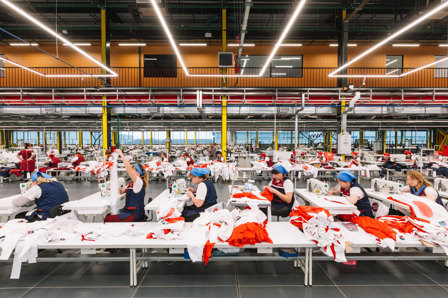 Интерьер современной швейной мануфактуры может выглядеть именно так, как на фото, и именно лаконичный дизайн отопительного оборудования может гармонично дополнить рабочие пространства.