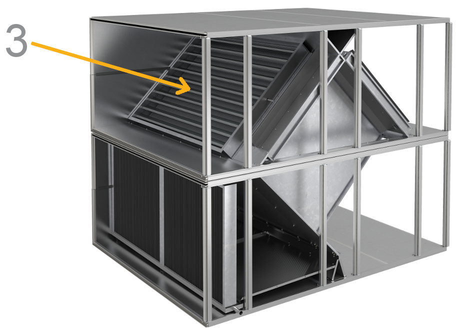 3 – воздушный клапан – перекрывает подачу приточного воздуха на перекрестноточном рекуператоре.