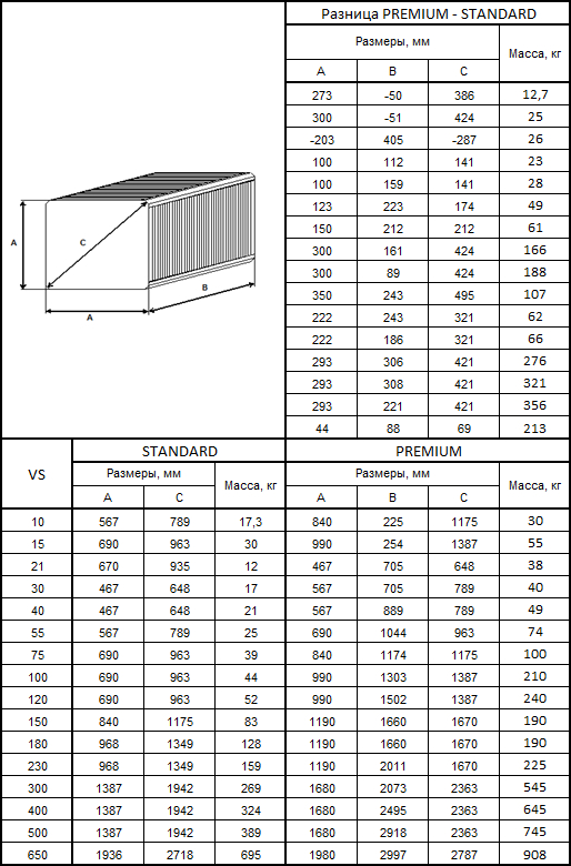Сравнительные показатели массы и размеров перекрестно-точных рекуператоров представлены ниже.