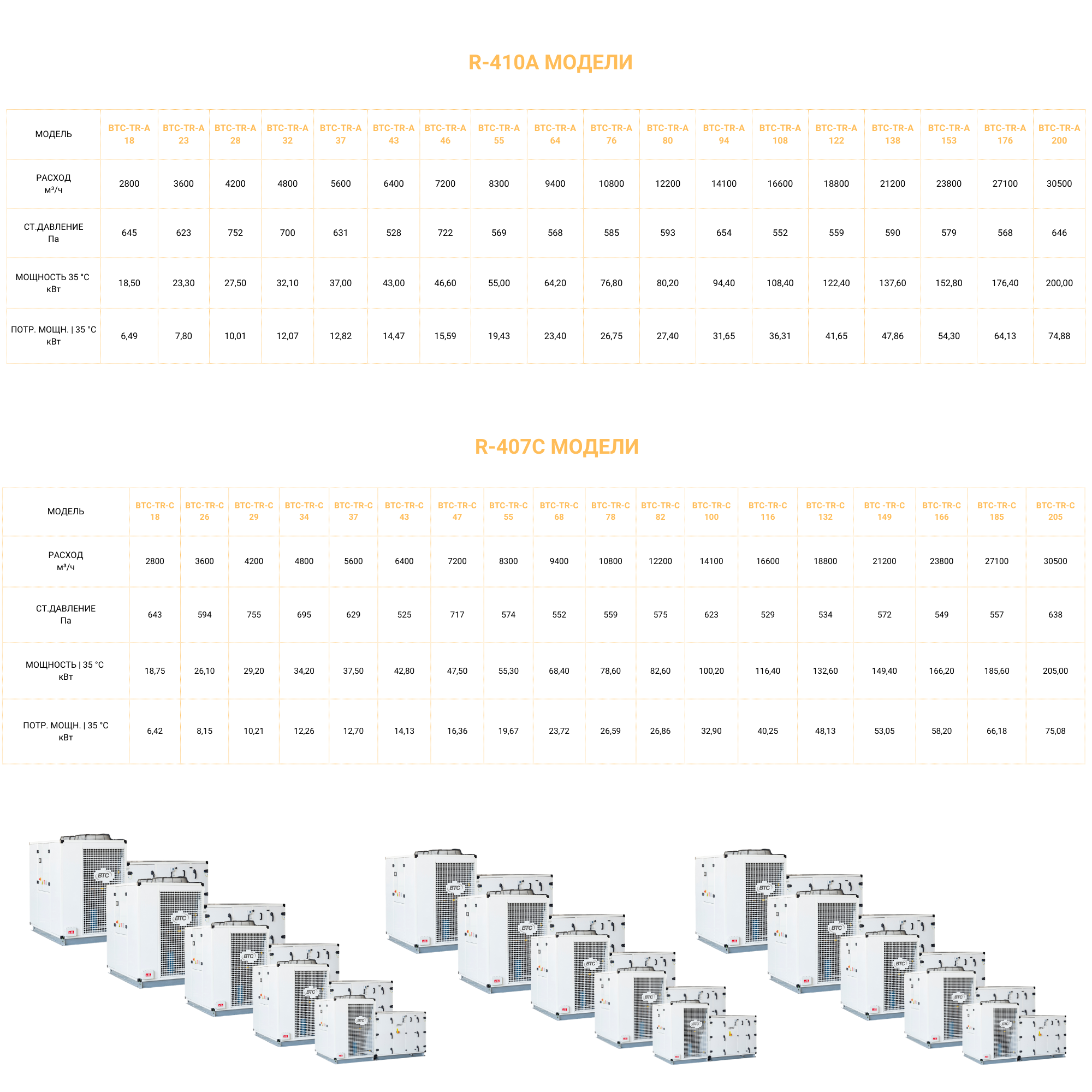 - Хладагенты: R410a, R407c