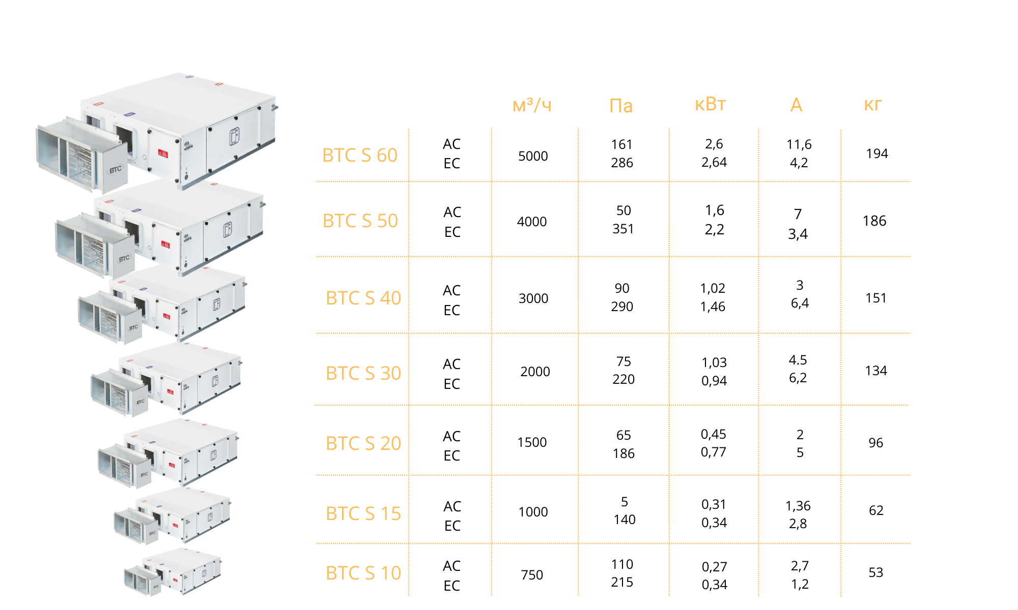 Подвесные агрегаты BTC S — это энергосберегающие компактные устройства, которые используются для вентиляции и кондиционирования воздуха, размещаются под потолком для экономии пространства. Наружный воздух проходит через рекуператор и нагревается удаляемым воздухом из вентилируемых помещений, проходящим через тот же теплообменник, два воздушных потока не смешиваются друг с другом. Компактные подвесные агрегаты не требуют большого технического пространства для монтажа и используются на таких объектах, как торговые центры и офисные здания.